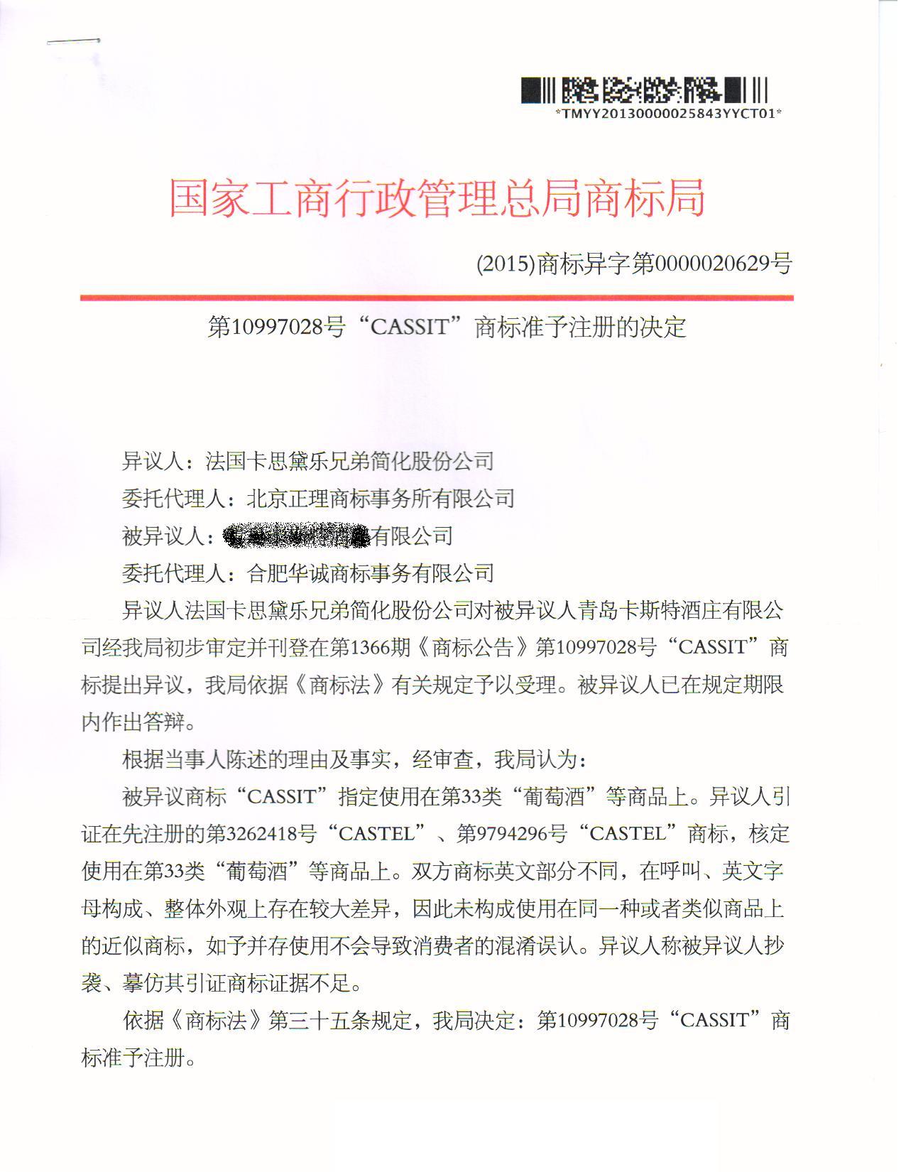 异议答辩成功裁定
