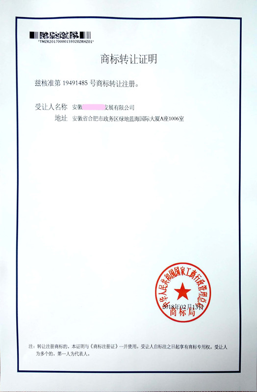 第“19491485”商标转让证明下达