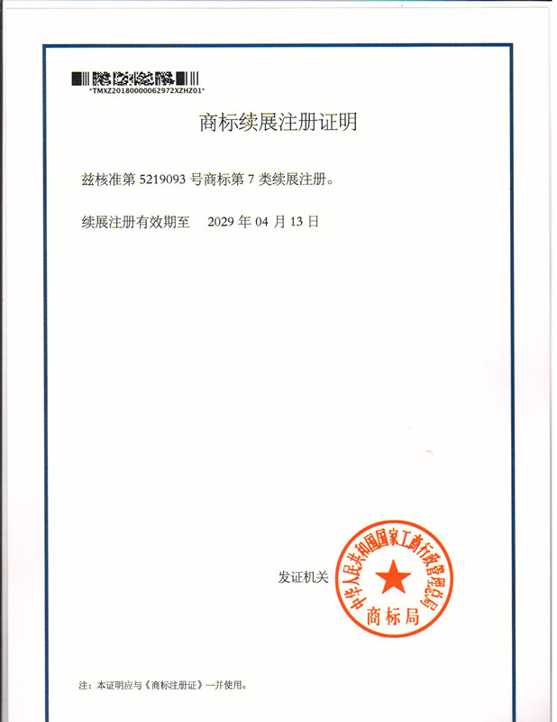第“5219093”7类商标续展注册证明下达