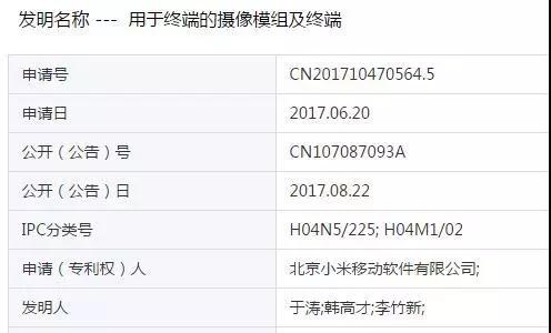 关于全面屏手机,国内的品牌要属小米手机最具代表性,其专门针对全面屏手机申请了数个专利。由于全面屏使手机造型上发生了较大改变,所以摄像头的位置和功能都要进行改变。小米特地为这个设计申请了专利。